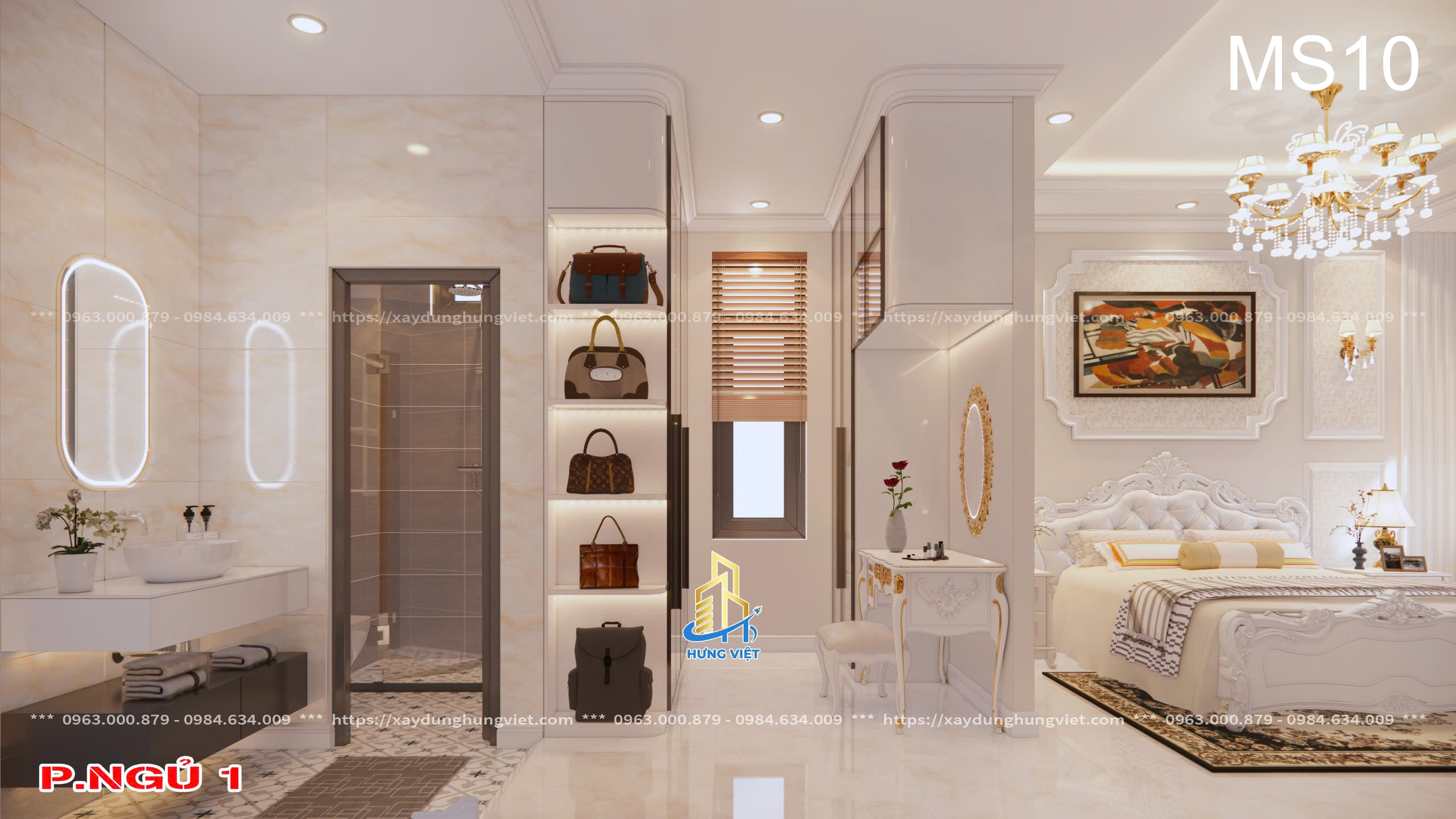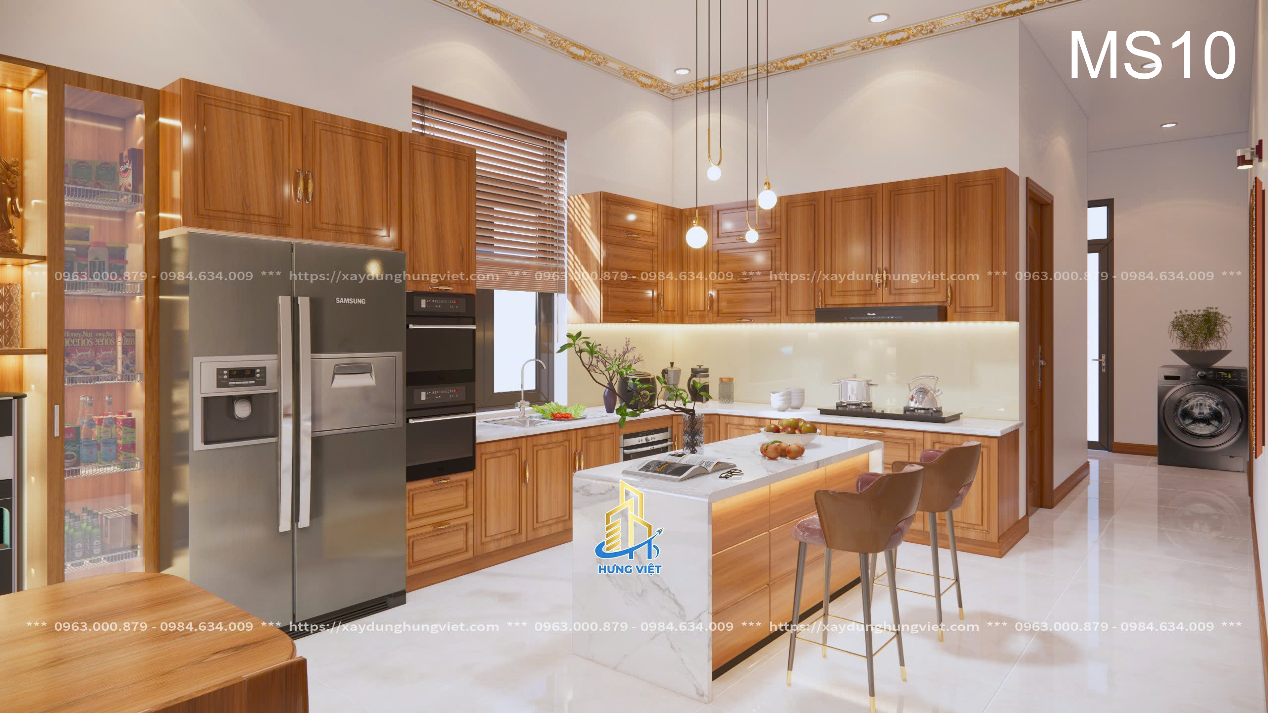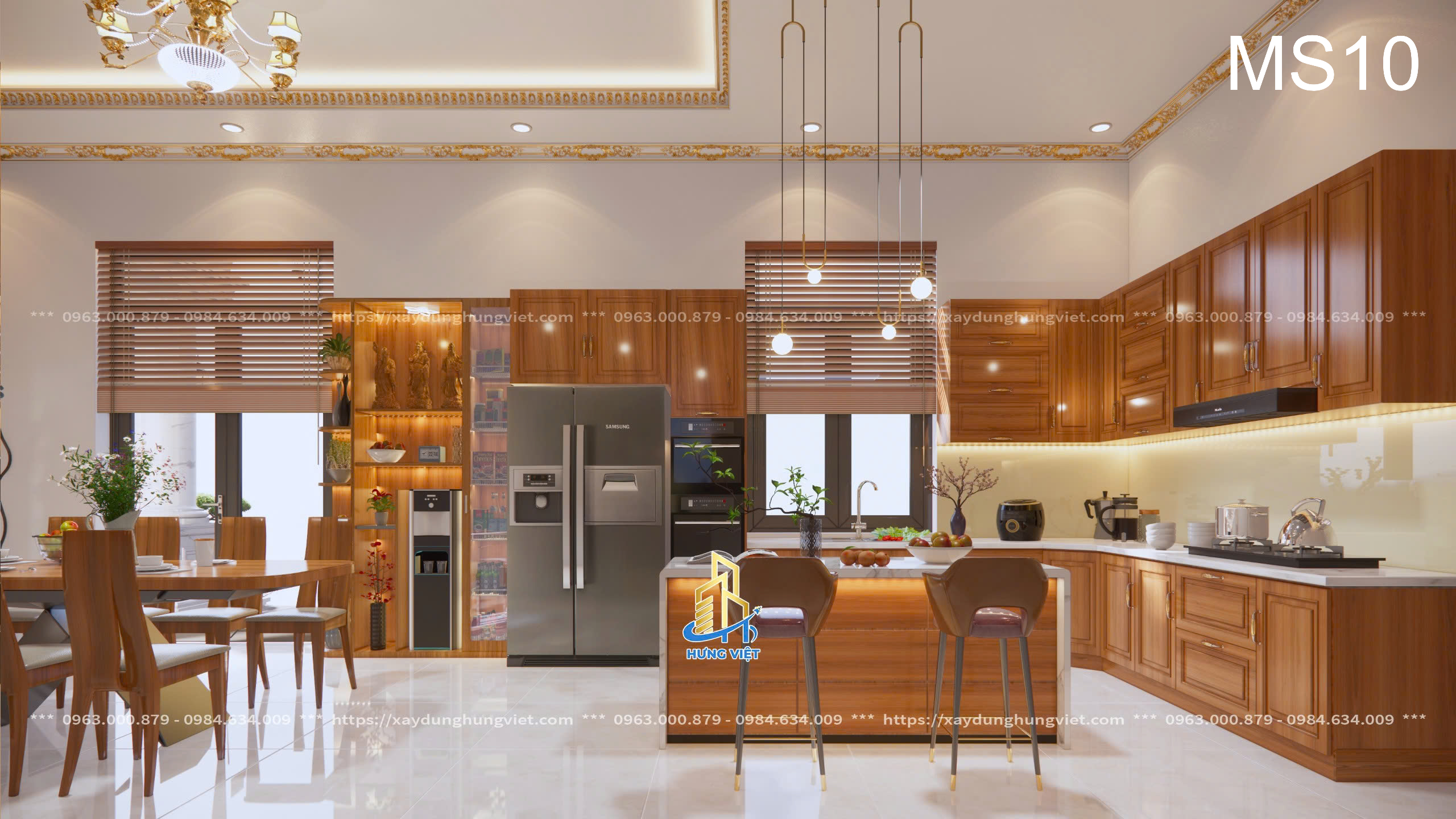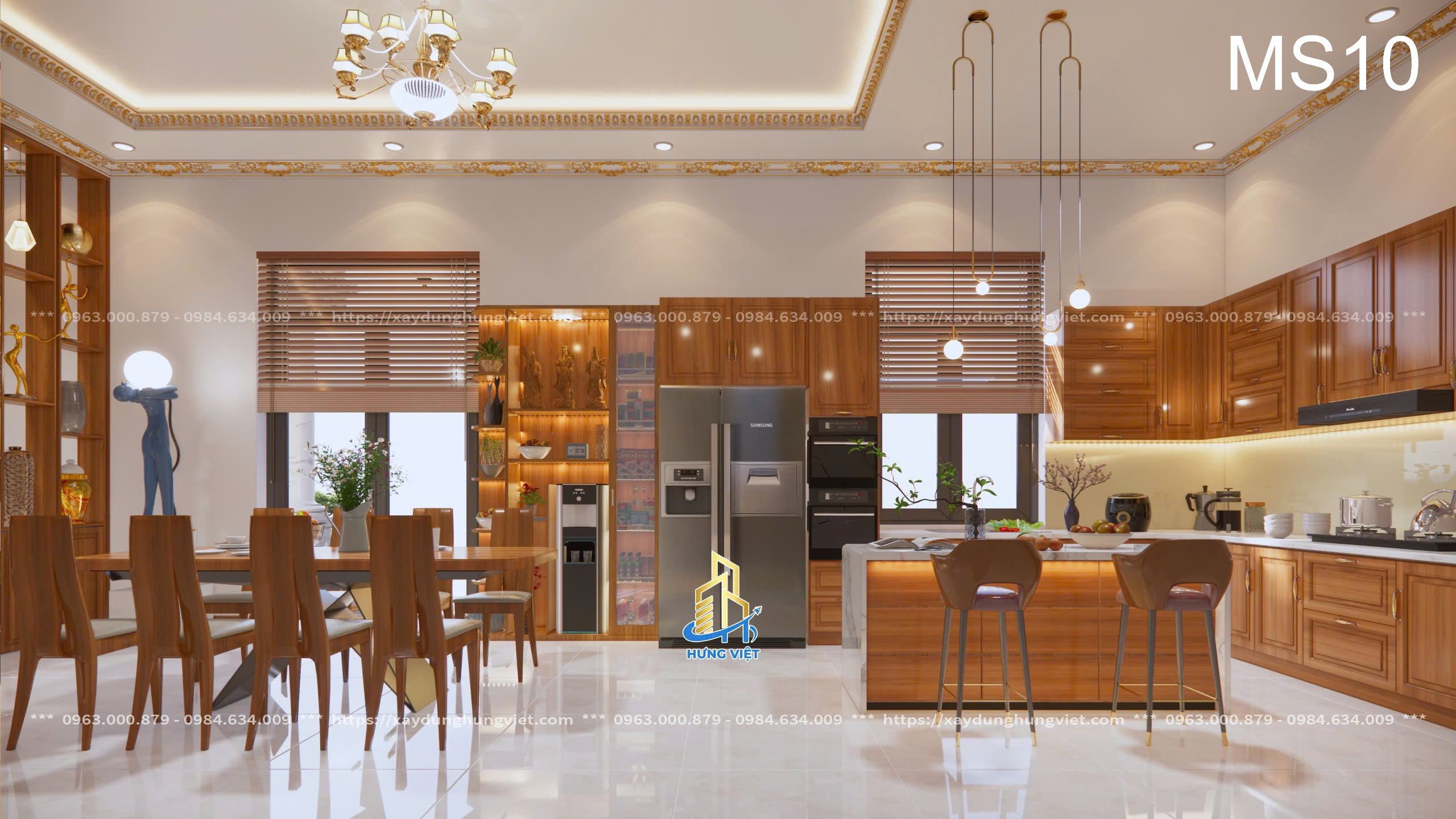 Mỗi chi tiết trong biệt thự của anh Hùng đều được Xây Dựng Hưng Việt chăm chút kỹ lưỡng, từ hệ thống đèn chiếu sáng cho đến cách bố trí các phòng chức năng. Màu sắc chủ đạo của căn nhà là sự kết hợp hài hòa giữa tông trắng và nâu gỗ, mang lại vẻ đẹp sang trọng, trang nhã và đầy ấm cúng. Những chi tiết trang trí tinh xảo trên tường, trần nhà cũng được đầu tư kỹ lưỡng để phù hợp với phong cách cổ điển kết hợp hiện đại của biệt thự.
